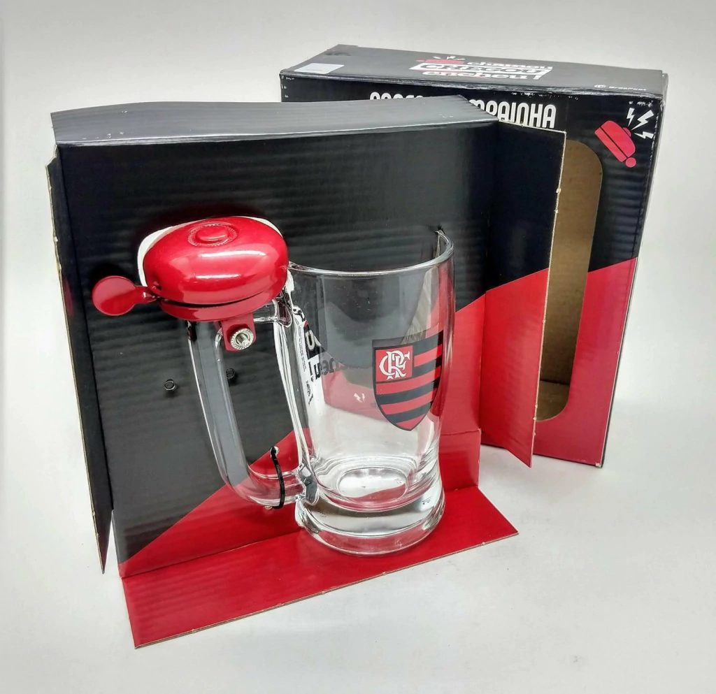 A CANECA TABERNA com campainha FLAMENGO, CHAMOU, CHEGOU, ENCHEU, é produzida em vidro de alta qualidade.