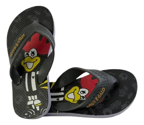 Ideal para os pequenos apaixonados pelo Atlético Mineiro, o chinelo infantil do Galo é a melhor opção para os momentos de lazer. Traz composição em EVA resistente e sua palmilha texturizada garante maior conforto. Apresenta design predominantemente preto e conta com o escudo do clube estampado. A tira tradicional é divisora de dedos e o símbolo do time aparece em destaque. Por fim, o solado de EVA é vulcanizado, complementando o produto. Adquira já!