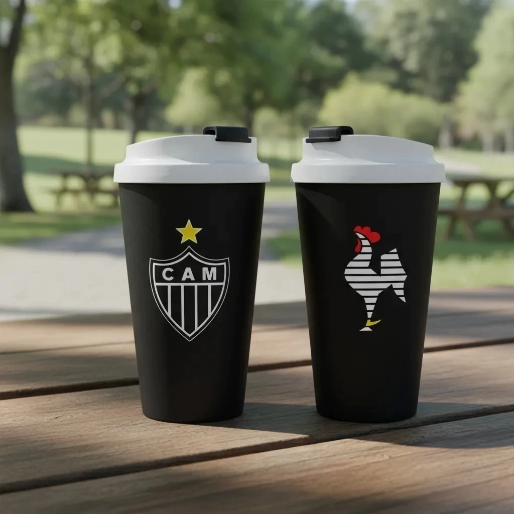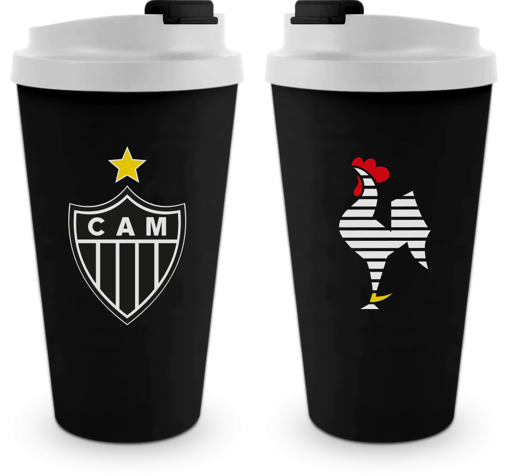 O Copo Click Térmico oficial do Galo é feito em plástico resistente com camada interna térmica, mantendo a temperatura da bebida por mais tempo sem esquentar por fora.