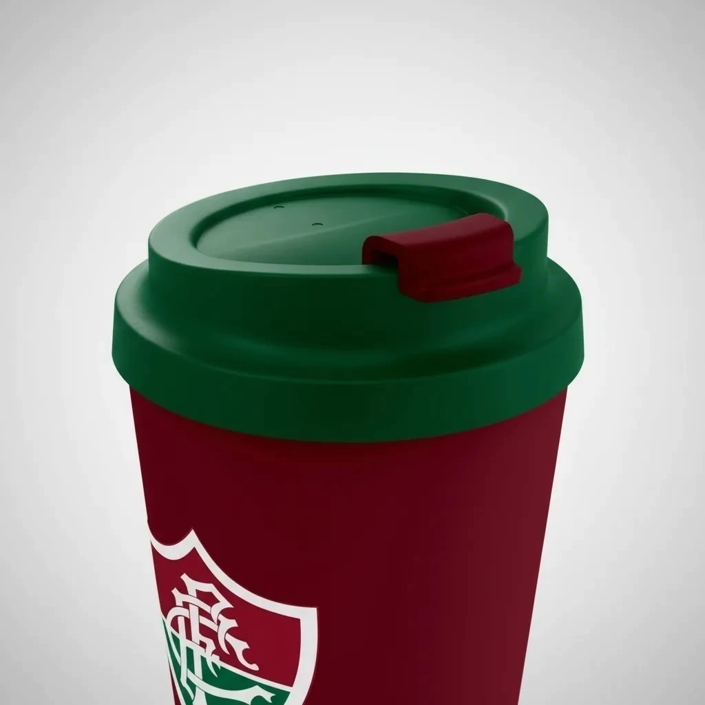 O Copo Click Térmico oficial do Fluminense é feito em plástico resistente com camada interna térmica, mantendo a temperatura da bebida por mais tempo sem esquentar por fora.