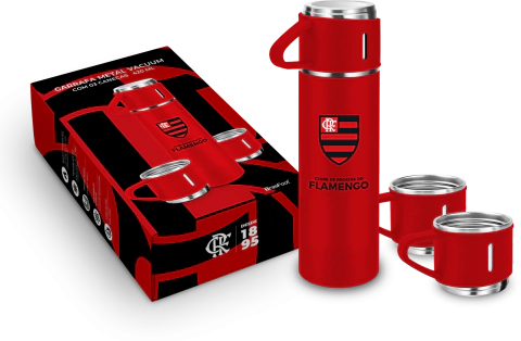 Apresentamos a linda garrafa térmica com tampa Oficial do Flamengo que vira caneca!